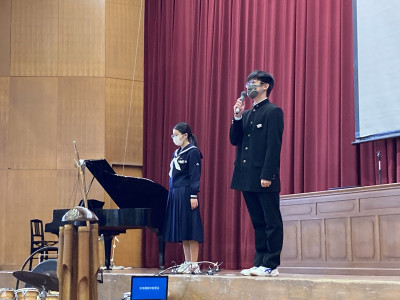 引き継いでくれる、全校指揮、篠原さん、全校伴奏、真鍋さん