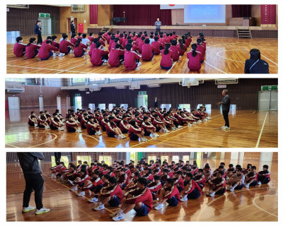 今村哲也先生から京都についてお話があり、「京都タワーは何m?」の問い掛けに、楽しそうに答えていました。修学旅行の具体的な話があると、実感が更に涌いてきますね。